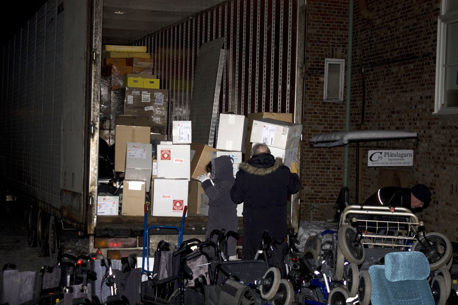 Sändningen innehöll 75 kubikmeter sjukvårdsmaterial, kläder och skor.