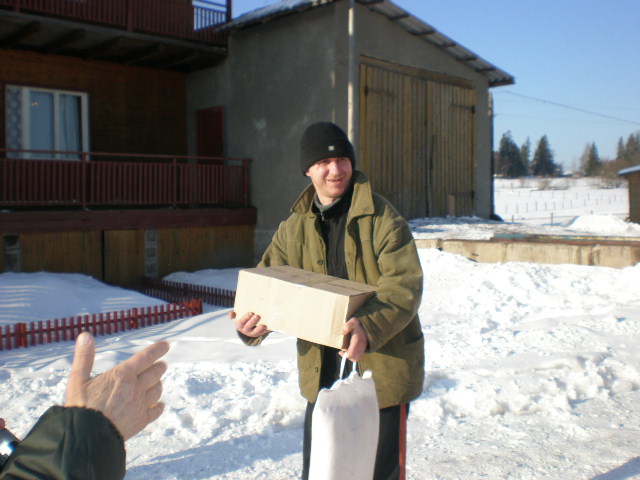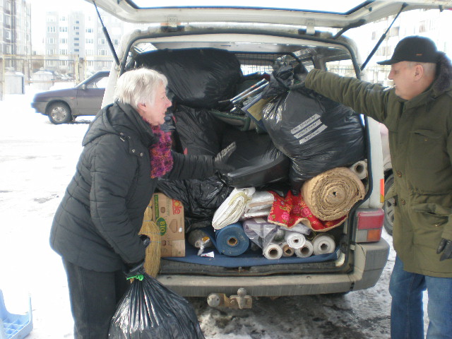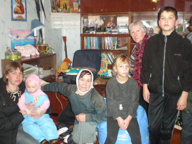Här kan du se hur de fick hjälp av den ortodoxa kyrkan på orten att dela ut kläder och skor till behövande familjer.